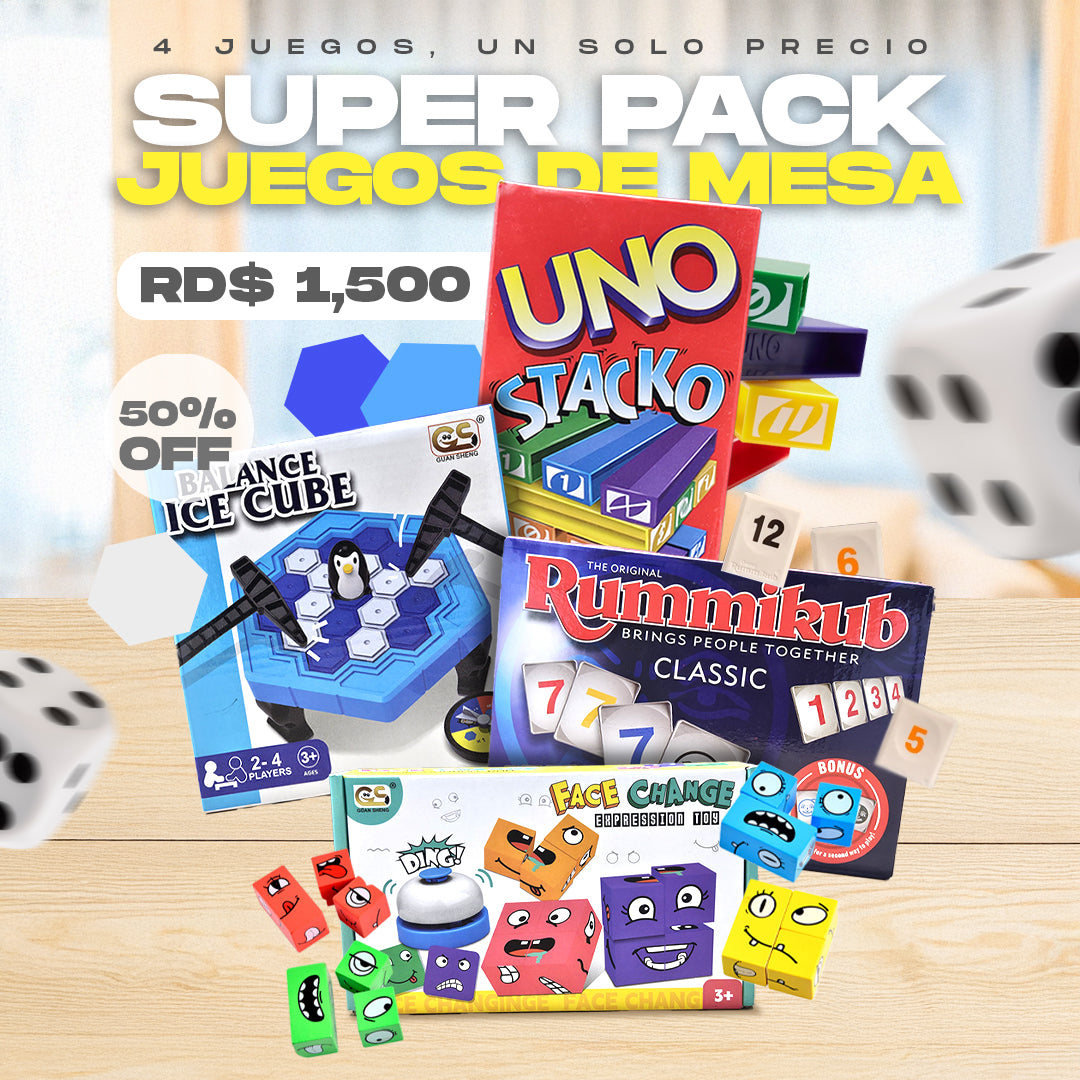 ✨ Imagina una tarde perfecta con amigos y familiares, 🎭 risas interminables y momentos inolvidables. 🎲 Nuestro pack de juegos de mesa está diseñado para unir a las personas ❤️, hacer que olvides la rutina y disfrutes de cada partida como nunca antes. 🃏 Con juegos para todas las edades y gustos, siempre habrá una opción perfecta para cada ocasión. 🌟
